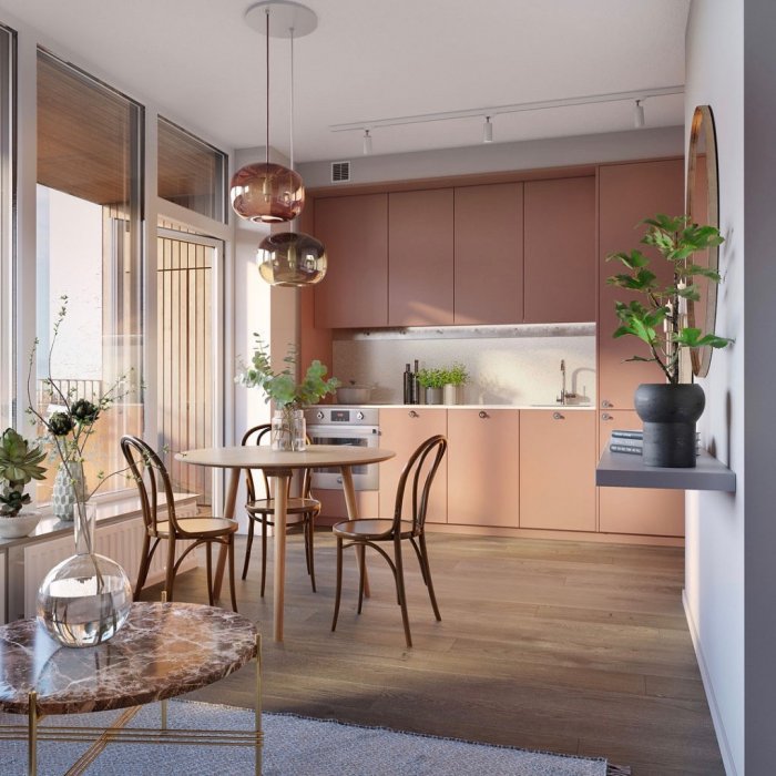 Пудровые и розовые оттенки в дизайне интерьера набирают популярность. Это могут быть как элементы отделки и декора, так и сама мебель в таких тонах.